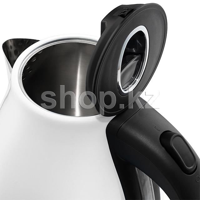 Корпус чайника выполнен из нержавеющей стали, а крышка и подставка - из пластика. Мерная шкала нанесена на корпус под рукой. Большое горлышко чайника облегчает доступ внутрь при мытье.