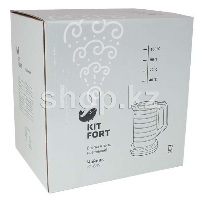Чайник Kitfort КТ-649, оснащенный терморегулятором, может не только вскипятить воду, но и нагреть ее до температуры 40, 70, 90, 100°С, что очень удобно при заваривании различных сортов чая. Корпус чайника выполнен из нержавеющей стали.Мерная шкала нанесена на корпус. Ручка чайника пластиковая, не нагревается и удобно лежит в руке. Кнопка открывания крышки расположена сверху на ручке. Кнопка открывания крышки расположена сверху на ручке.