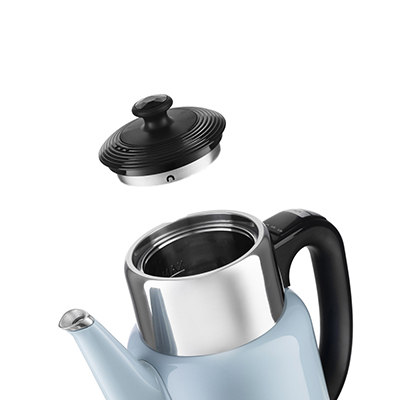 Корпус и крышка чайника выполнены из сочетания металла и пластика. Все соприкасающиеся с водой части выполнены из металла.