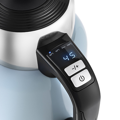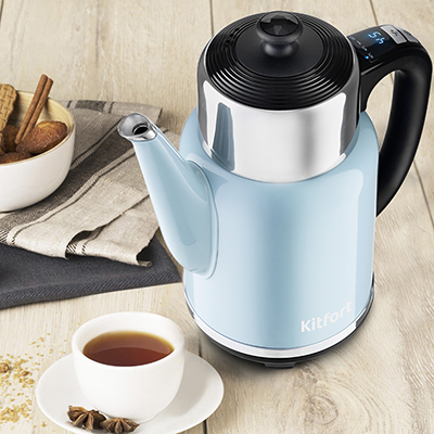 Электрический чайник Kitfort KT-668 с терморегулятором позволит не только вскипятить воду, но и нагреть ее до температуры 40 или 60 °С, что очень удобно для заваривания зеленого чая или для приготовления детского питания.