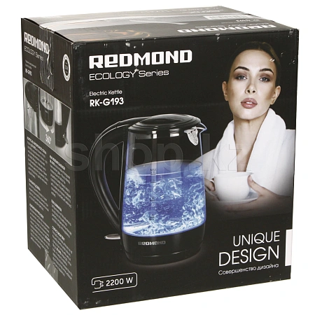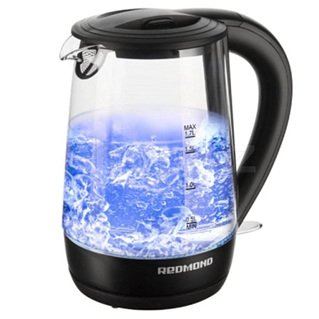 REDMOND RK-G193 – дизайнерский электрический чайник с синей светодиодной подсветкой и прозрачной стеклянной колбой. Эта модель может стать не только полезным, но и элегантным аксессуаром на вашей кухне.