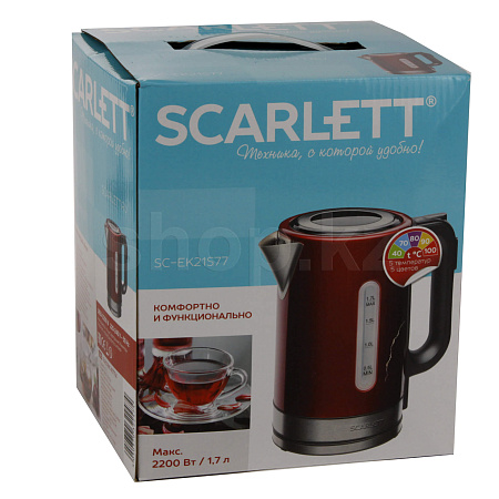 Электрический чайник SC-EK21S77 с увеличенным объемом 1.7 л оснащён автоматической системой открытия крышки. Выбор температуры на ручке позволит сэкономить место и подобрать правильную температуру для любых видов чая.