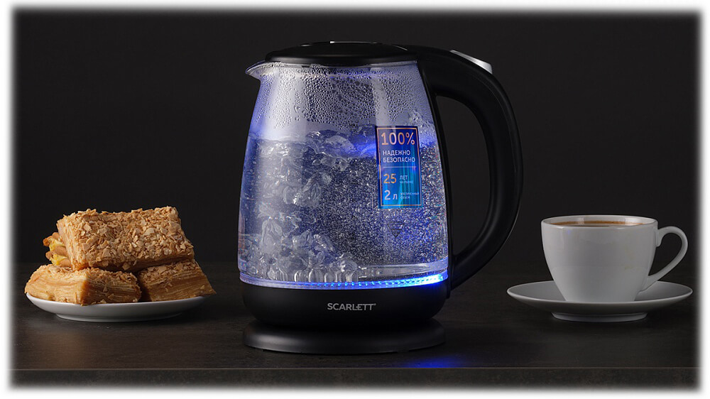 Электрический чайник SC-EK27G25 c увеличенным объемом 2 л оснащён традиционной системой открытия крышки. Эргономичная ручка, закрытый нагревательный элемент сделают эксплуатацию прибора еще проще и комфортнее.