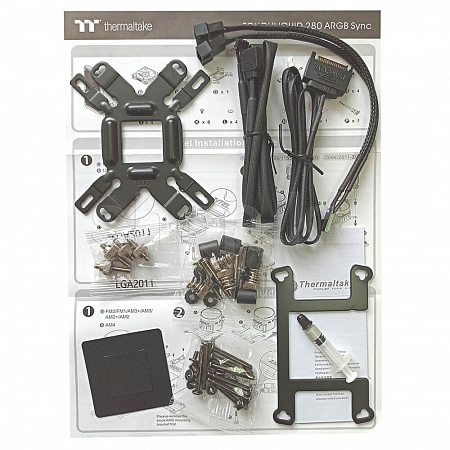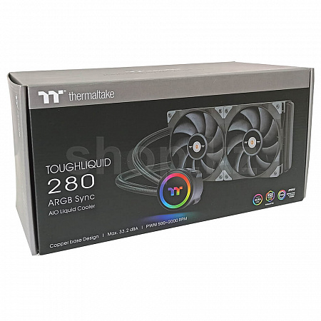 TOUGHLIQUID 280 ARGB Sync - готовая к использованию система жидкостного охлаждения категории "все в одном". Комплектуется производительными и надежными вентиляторами серии TOUGHFAN. Крышка водоблока имеет подсветку состоящую из 6 RGB светодиодов адресного типа, которыми можно управлять как при помощи встроенного контроллера, так и силами материнской платы, имеющей соответствующий интерфейс на 5В.