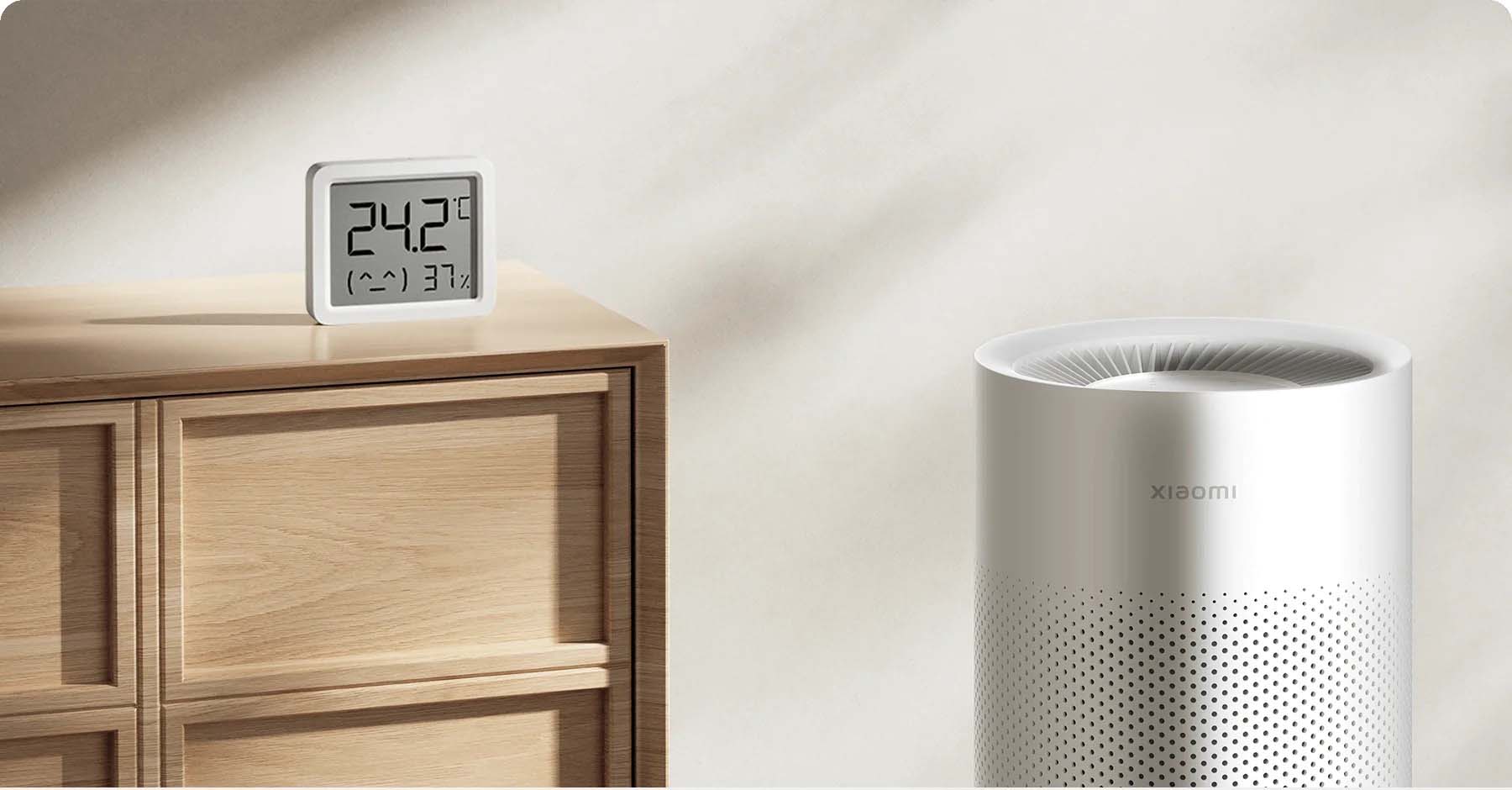 Умный термометр и анализатор влажности Xiaomi Smart Temperature and Humidity Monitor 3 Mini отличается компактным дизайном с тонкой рамкой 5,1 мм и ЖК-экраном размером 42,8 × 35,1 мм. Высокое соотношение площади экрана к корпусу обеспечивает большую площадь дисплея, что упрощает просмотр уровня температуры и влажности, делая использование прибора более интуитивно понятным и комфортным.