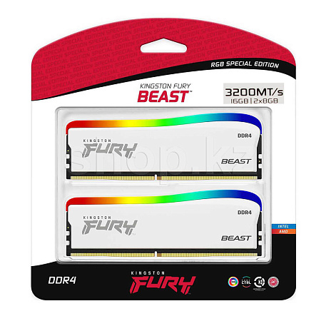 DDR-4 DIMM 16 GB 3200 MHz Kingston Fury Beast RGB Special Edition, 2x 8 GB Kit, White, BOX (KF432C16BWAK2/16)