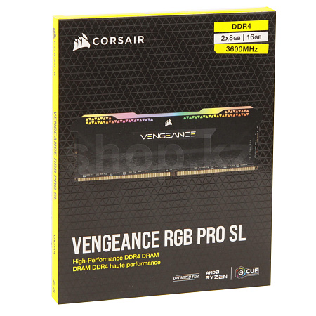 DDR-4 DIMM 16 GB 3600 MHz Corsair Vengeance RGB Pro SL, 2x 8 GB Kit, Black, BOX (CMH16GX4M2Z3600C18)