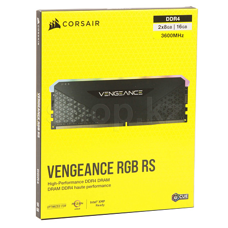 DDR-4 DIMM 16 GB 3600 MHz Corsair Vengeance RGB RS, 2x 8 GB Kit, Black, BOX (CMG16GX4M2D3600C18)