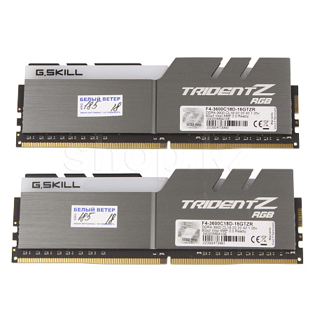 DDR-4 DIMM 16 GB 3600 MHz G.SKILL Trident Z RGB, 2x 8 GB Kit, Black, BOX (F4-3600C18D-16GTZR)