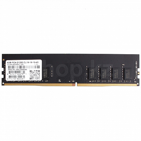 Оперативная память произведена с учетом требований современных компьютерных систем, что гарантирует ее универсальность и надежность. Модуль относится к классу DDR4, обладает емкостью 4 ГБ. Предельная частота работы устройства достигает 2666 МГц, а пропускная способность – 21300 Мб/с.