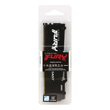 Kingston FURY Beast DDR5 RGB стильно выглядит и позволяет выполнять разгон на игровых платформах нового поколения с помощью передовых технологий. Оцените непревзойденную скорость DDR5 благодаря удвоенному количеству блоков памяти и длительности импульсов.
