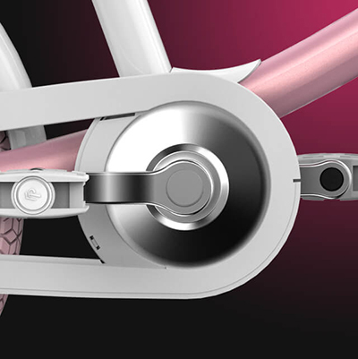 Защитный кожух из прочного пластика полностью закрывает цепь, исключая попадание в неё ног или одежды.
