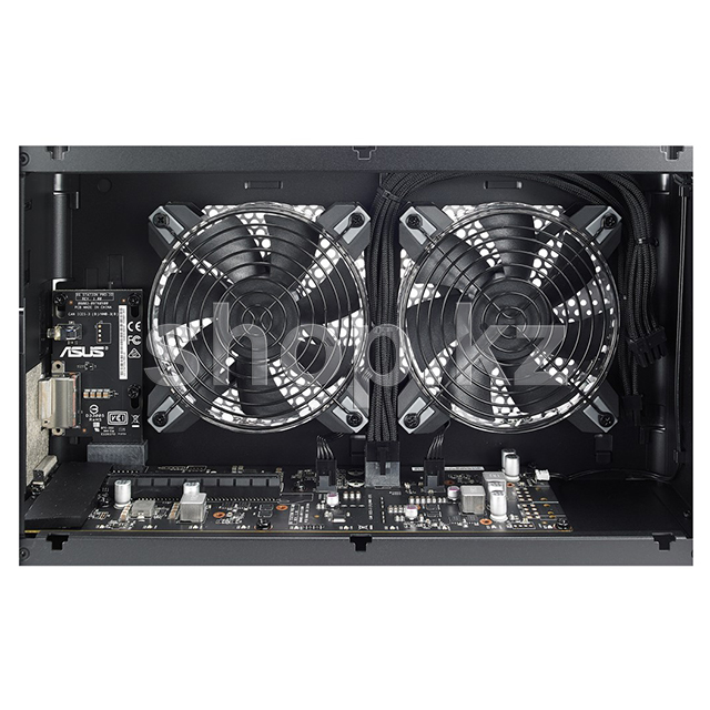 XG station Pro қондырғысының ішінде диаметрі 120 мм болатын екі желдеткіш бар, олар ыстық ауаны сыртқа шығарады. Көптеген басқа ұқсас шешімдерден айырмашылығы, желдеткіштің жылдамдығы қатаң бекітілген емес. Ыңғайлы ASUS GPU Tweak II утилитасын қолдана отырып, пайдаланушы қондыру станциясының желдеткіштерін де, оған орнатылған ASUS графикалық карталарын да дербес реттей алады, ал төмен жүктемелерде желдеткіштер толығымен тоқтап, мүлдем үнсіз жұмыс істей алады.