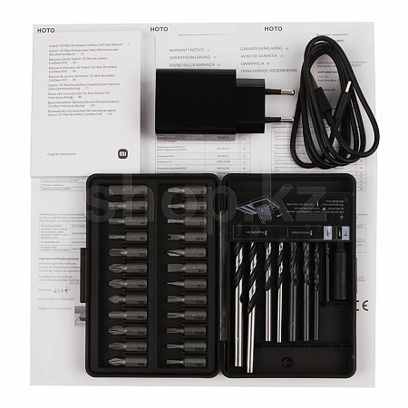 Устройство поставляется в водонепроницаемом тканевом кейсе. В нём находятся 24 различных стальных бита, 8 свёрл и магнитная насадка. Аксессуары изготовлены из высококачественной стали S2 с твёрдостью 60 HRC.