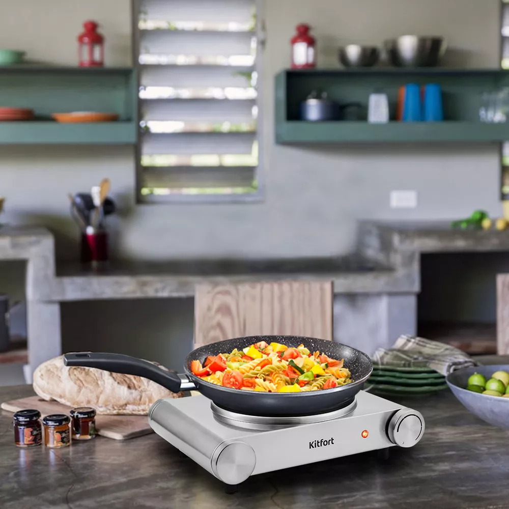 Электрическая плита Kitfort KT-151 практична и экономична. Плавная регулировка температуры, позволяет настроить нагрев под любые блюда и готовить их вкусно, быстро и абсолютно безопасно! Управление регулятором