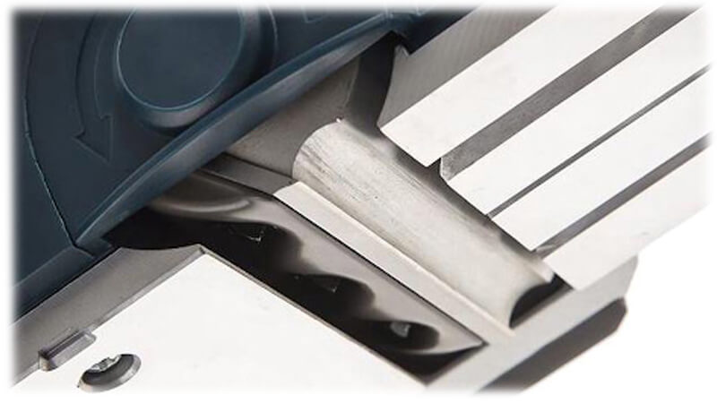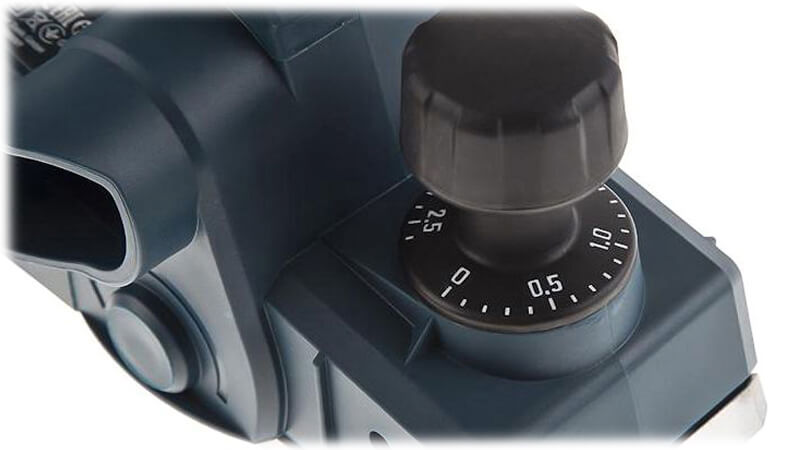 Глубина среза регулируется вручную с помощью поворотного рычага в передней части корпуса. Максимальная величина составляет 2.6 мм. 3 V-образных паза рубанка Bosch обеспечивают точную и гибкую обработку углов и кромок.
