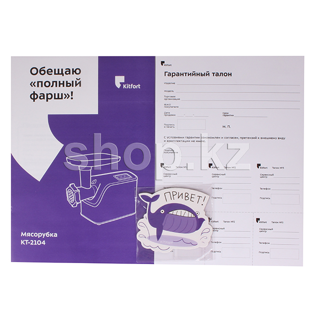Мясорубка Kitfort KT-2103 оснащена мощным мотором 1800 Вт, что обеспечивает производительность 2,3 кг фарша в минуту!