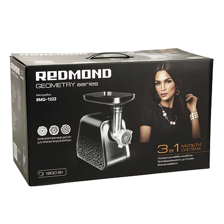 Мясорубка Redmond RMG-1222 при мощности до 1200 Вт способна превратить в фарш 2 кг мяса за минуту. С такой производительностью она удовлетворит потребности большой семьи. К тому же в комплекте у нее 3 диска с разным диаметром отверстий для фарша, с помощью которых можно регулировать степень измельчения. Так получится сделать для детей нежные однородные котлетки, а для гурманов постарше – с ощутимыми кусочками. С Redmond RMG-1222 поставляется 2 насадки: для кеббе и для колбас – при желании можно освоить приготовление блюд и разнообразить семейные обеды и ужины. Управлять мясорубкой совсем несложно: на ней всего 3 кнопки (включение, выключение и реверс). Последняя понадобится, если шнек засорится – после ее нажатия вал станет вращаться в обратную сторону и вытолкнет все содержимое обратно, в загрузочное отверстие.