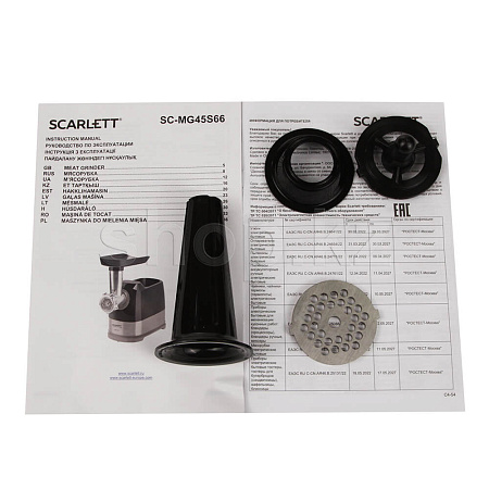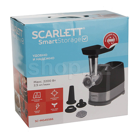 Если вам нужна мясорубка с удобным управлением и без большого количества дополнительных аксессуаров, Scarlett SC-MG45S66 станет подходящей моделью. Высокая мощность мотора позволяет ей производить фарш со скоростью 2.5 кг в минуту. Вы сможете и быстро приготовить мясное блюдо на обед, и заготовить полуфабрикаты впрок для хранения в морозилке.