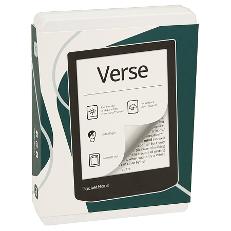 PocketBook Verse – это компактный ридер, весящий всего 182 г. Он является идеальным сочетанием механических кнопок управления и сенсорного экрана.