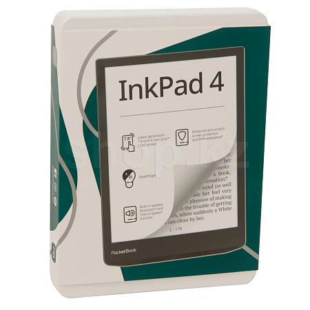 PocketBook InkPad 4 – черно-белый крупноформатный ридер нового поколения: с продвинутым экраном E Ink Carta 1200, расширенными аудиовозможностями, защитой от воды по IPX8 и массой других интересных опций.