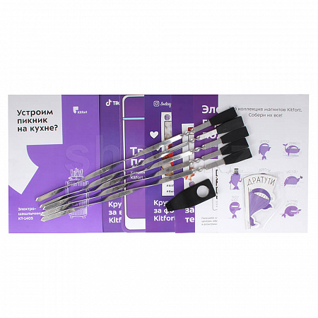 Шашлычница Kitfort КТ-1405 работает от обычной электрической розетки, не нужно ставить мангал и разжигать угли, нет никакой сажи, дыма и копоти!