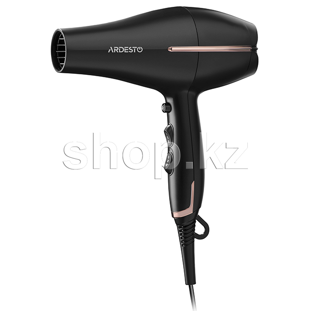 Максимальная мощность устройства – 2200 Вт, предусмотрена защита от перегрева и поддерживаются две скорости с тремя температурными режимами, которые можно выбрать с помощью клавиш управления на ручке. Съемная насадка-концентратор улучшает распределение воздушного потока, а функция Cool Shot обеспечивает более щадящую сушку ослабленных волос холодным воздухом.