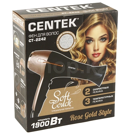 Фен Centek СТ-2242 поможет быстро высушить и красиво уложить волосы любой длины. Режим фиксируемого холодного обдува для закрепления укладки. Имеется петля для подвешивания. Черный корпус с покрытием Soft touch выполнен из термостойкого пластика. Фен работает в двух режимах интенсивности подачи воздуха и в трех режимах нагрева.
