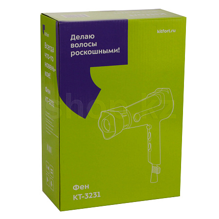 С помощью фена КТ-3231 вы сможете быстро высушить волосы и сделать красивую стойкую укладку. Фен выдает направленный поток воздуха, поэтому волосы с ним сушить просто и удобно.