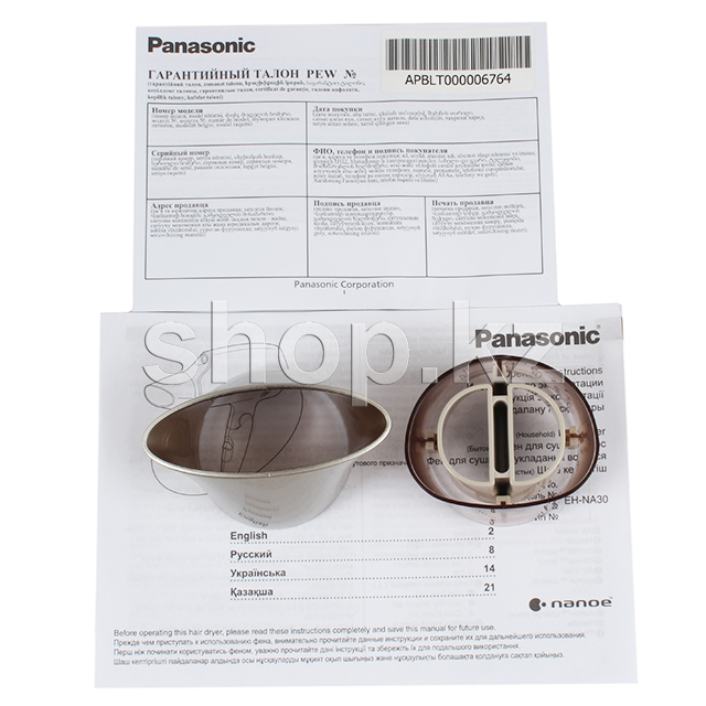 Фен Panasonic EH-NA30-W865 - это сочетание традиционно высокого качества и инновационных технологий. Комфортная и простая укладка без вреда для волос. Для здоровой кожи головы и волос с применением технологии Nanoe проникает глубоко в волосы, поддерживает оптимальный баланс влаги и сглаживает поверхность кутикулы, для более блестящих и послушных волос. Богатые влагой частицы nanoe также увлажняют кожу головы, предотвращая ее пересыхание и раздражение.