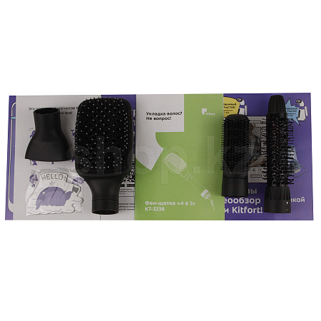 Фен-щетка «4 в 1» КТ-3236 поможет быстро высушить ваши волосы и сделать укладку. Четыре насадки в комплекте позволяют создавать различные укладки, используя одно устройство. Корпус фена-щетки выполнен из пластика и удобно лежит в руке.
