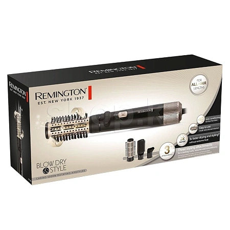 Remington AS7580 разработан специально для создания роскошных укладок с минимальным тепловым повреждением. В комплекте 3 насадки для создания объема и легкой завивки или выравнивания волос во время сушки. Теперь вы можете делать укладки в своем неповторимом стиле, что позволяет всегда и везде быть уверенной в себе. Одна из особенностей воздушного стайлера Remington AS7580 — это вращение насадок. Благодаря тому, что стайлер предназначен для вращения в двух направления, вы можете добиться симметричной укладки с обеих сторон головы значительно быстрее. Быстро сушите волосы с концентратором, создавайте красивые свободные локоны с круглой вращающейся 38-миллиметровой насадкой-щеткой или идеально ровные прически с плоской насадкой-щеткой. Функция ионизации избавит волосы от электризации и придаст им ухоженный вид.