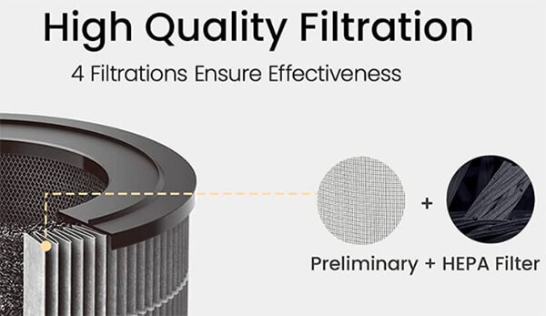 Третья фильтрация - это фильтр с активированным углем, который действует как ловушка для запаха и дыма, поскольку он может поглощать запах домашних животных и пищи, дым, смог и любые другие неприятные домашние запахи. Внутренний фильтр работает как резервный для лучшей поддержки фильтрации.