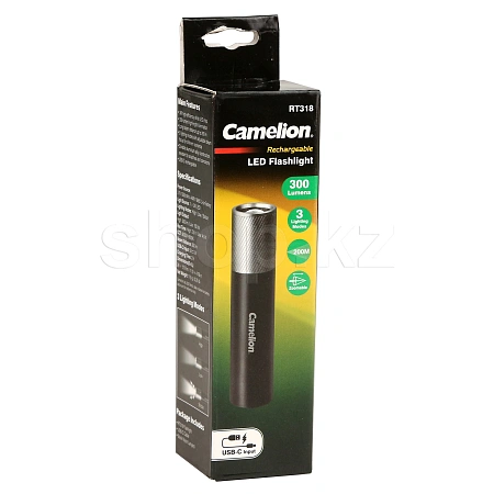 Фонарь перезаряжаемый Camelion RT318-CBH — компактный и мощный ручной фонарь с яркостью 300 лм, разработанный для ежедневного использования, путешествий, ремонта и активного отдыха. Благодаря аккумулятору 18650 и зарядке через USB Type-C фонарь обеспечивает стабильную работу и быстрое восстановление заряда.