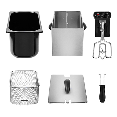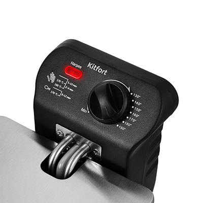 Простое управление У фритюрницы имеется удобный регулятор температуры с индикатором нагрева. Диапазон температур устанавливается в диапазоне 0-190 °С. |