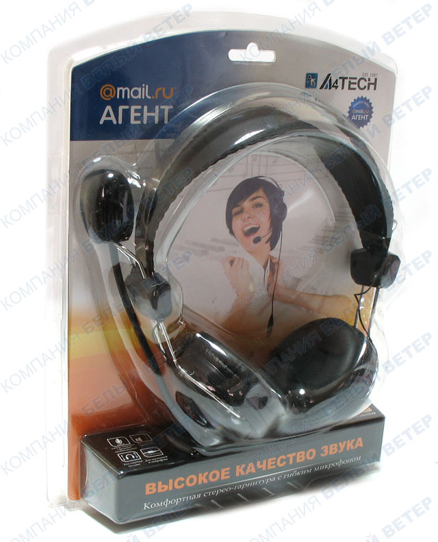 Регулирующееся оголовье и мягкие амбушюры обеспечивают плотное прилегание гарнитуры к голове. В шнур гарнитуры встроен регулятор громкости с выключателем. Регулируемый микрофон A4Tech HS-7P укреплен на гибком держателе. В комплектацию модели входит специальный крючок для крепления гарнитуры на мониторе.