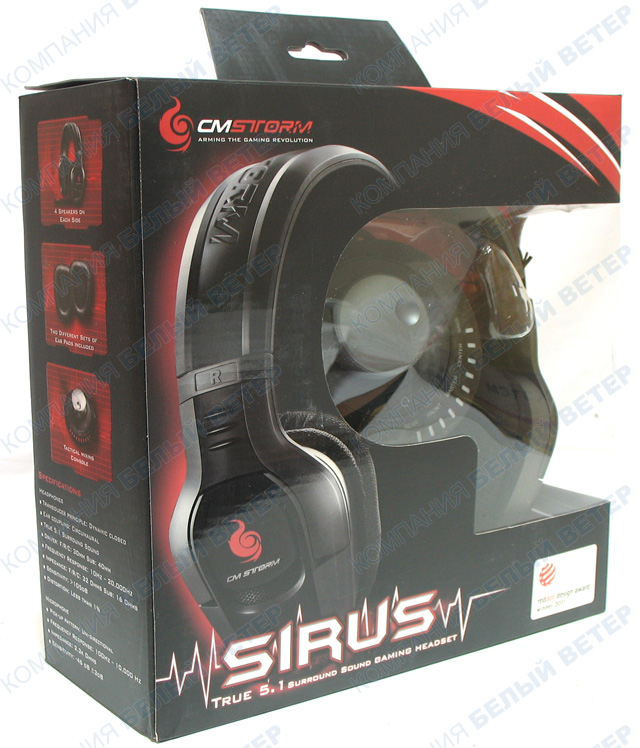 Акустическая система CM Storm Sirus позволяет воспроизводить чистый, точно спозиционированный и безупречный звук через 8 динамиков, смонтированных в корпусе наушников. Звучание распределяется по дискретным каналам в точном соответствии со стандартом Surround Sound 5.1. Компактный микшерный пульт даёт возможность пользователю производить точную подстройку звучания под себя. Для общения с членам команды в CM Storm Sirus встроен узконаправленный высокоэффективный микрофон, который обеспечивает качественную передачу голоса.