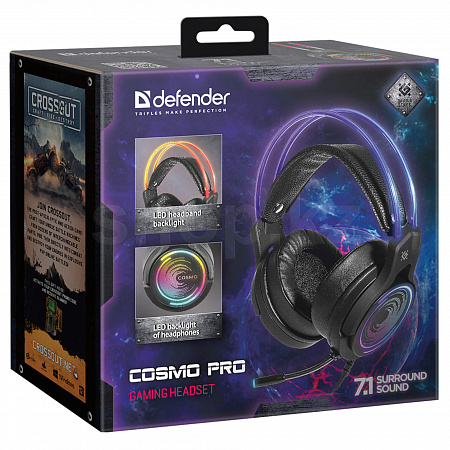 Стильная игровая гарнитура с RGB подстветкой корпуса и оголовья, виртуальным объемным звуком 7.1, комфортными амбушюрами из протеиновой пены и отличным качеством звука.