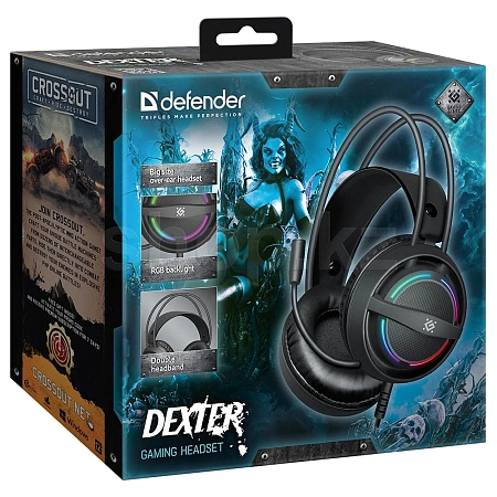 Defender Dexter - игровая гарнитура с переливающейся подсветкой, двойным оголовьем, мягкими комфортными амбушюрами и отличным звуком.