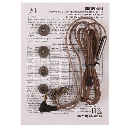 Внутриканальные мониторные наушники с гибридными драйверами (динамическим и электростатическим) и микрофоном Music Public Kingdom IEM220M.