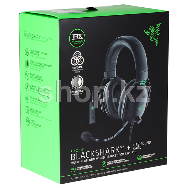Razer BlackShark V2 + USB Sound Card, Black гарнитурасы