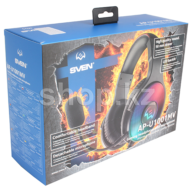 SVEN AP-U1001MV — это одно из топовых решений в линейке игровых гарнитур, в лучших традициях финского производителя сочетающее премиальное качество с доступной стоимостью. Внешний вид устройства сразу обращает на себя внимание благодаря крайне эффектной RGB-подсветке.