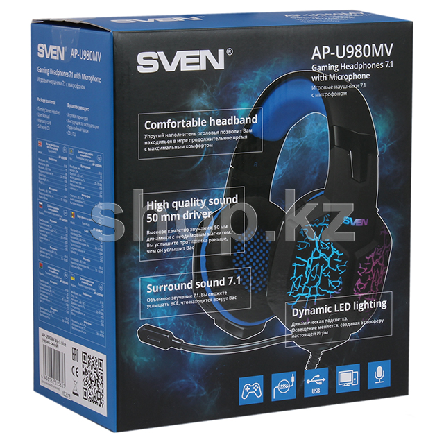 Компания SVEN представляет одну из самых ожидаемых моделей - наушники AP-U980MV для профессиональных геймеров! Она сочетает в себе великолепный звук и запоминающийся дизайн – настоящая мечта игромана. Напористый, яркий, объемный и реалистичный звук 7.1 наушников SVEN AP-U980MV обеспечивает полный эффект присутствия в игре.