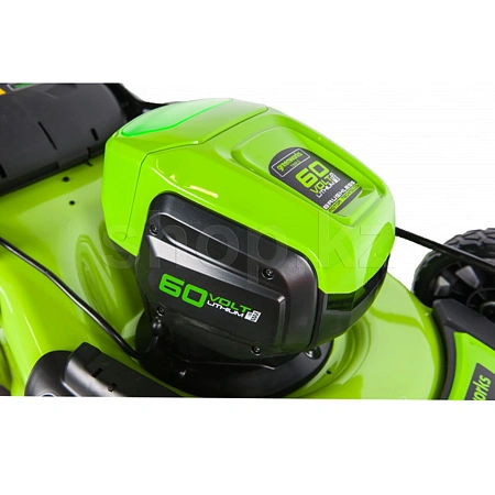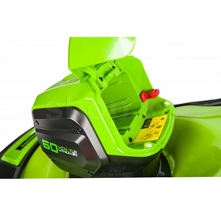 Аккумуляторная батарея 60 вольт, используемая этой косилкой, совместима с целым спектром устройств линейки Greenworks 60V.