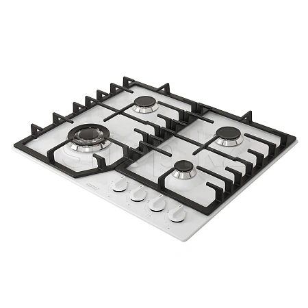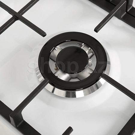 Варочная поверхность выполнена из эмали, устойчивой к высоким температурам и загрязнениям. Чугунные решётки обеспечивают устойчивость посуды, а управление конфорками осуществляется механически. Электророзжиг встроен в ручки, что делает использование панели удобным и быстрым.