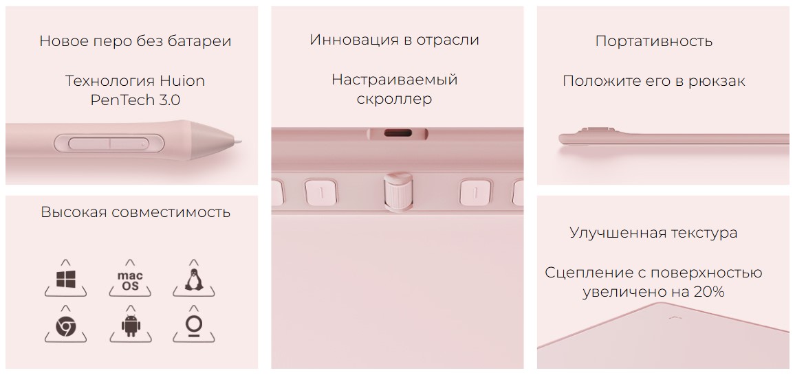 Планшет: 6 программируемых клавиш + скроллер