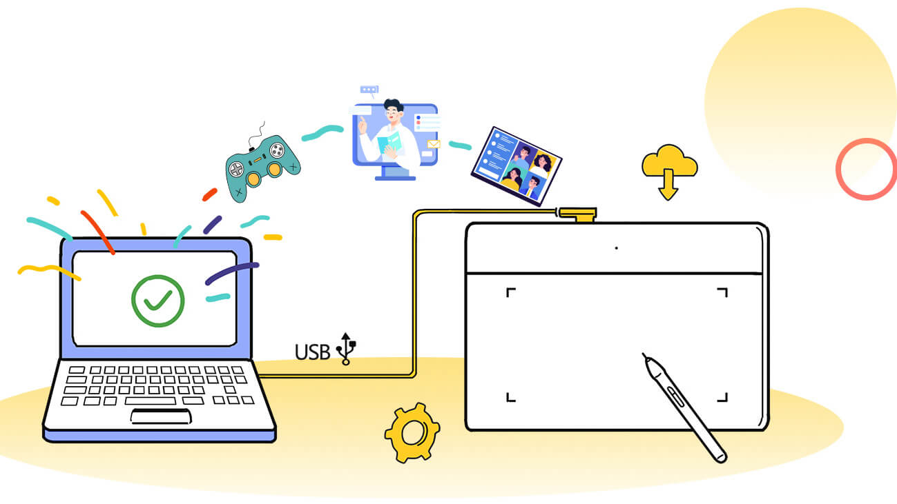 Для расширенных настроек, таких как давление пера, загрузите драйвер и выполните простую трехэтапную установку.