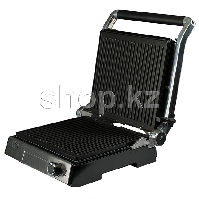 Гриль оснащен термостатом с плавной регулировкой, позволяющим выставить температуру вплоть до 230°С. Нагревательные панели изготовлены из алюминия с нанесенным антипригарным покрытием. Они съемные и могут быть легко очищены.