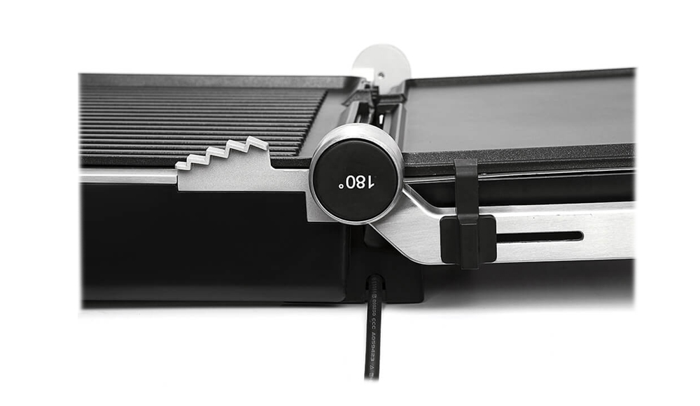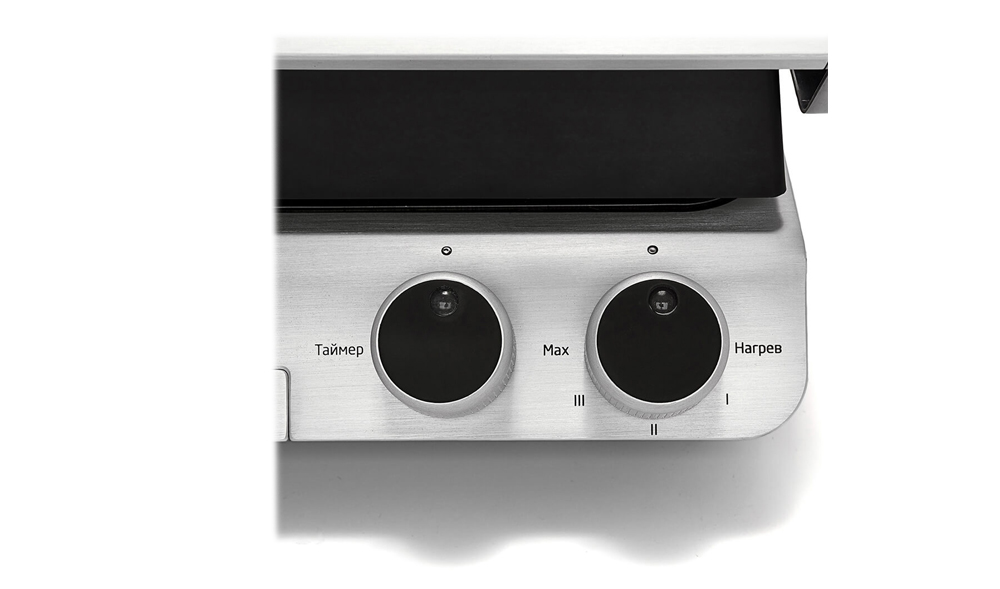 Гриль оснащен термостатом с плавной регулировкой, позволяющим выставить температуру вплоть до 230 °С. С помощью таймера вы можете задать время приготовления вплоть до 30 минут. Режим барбекю 180°