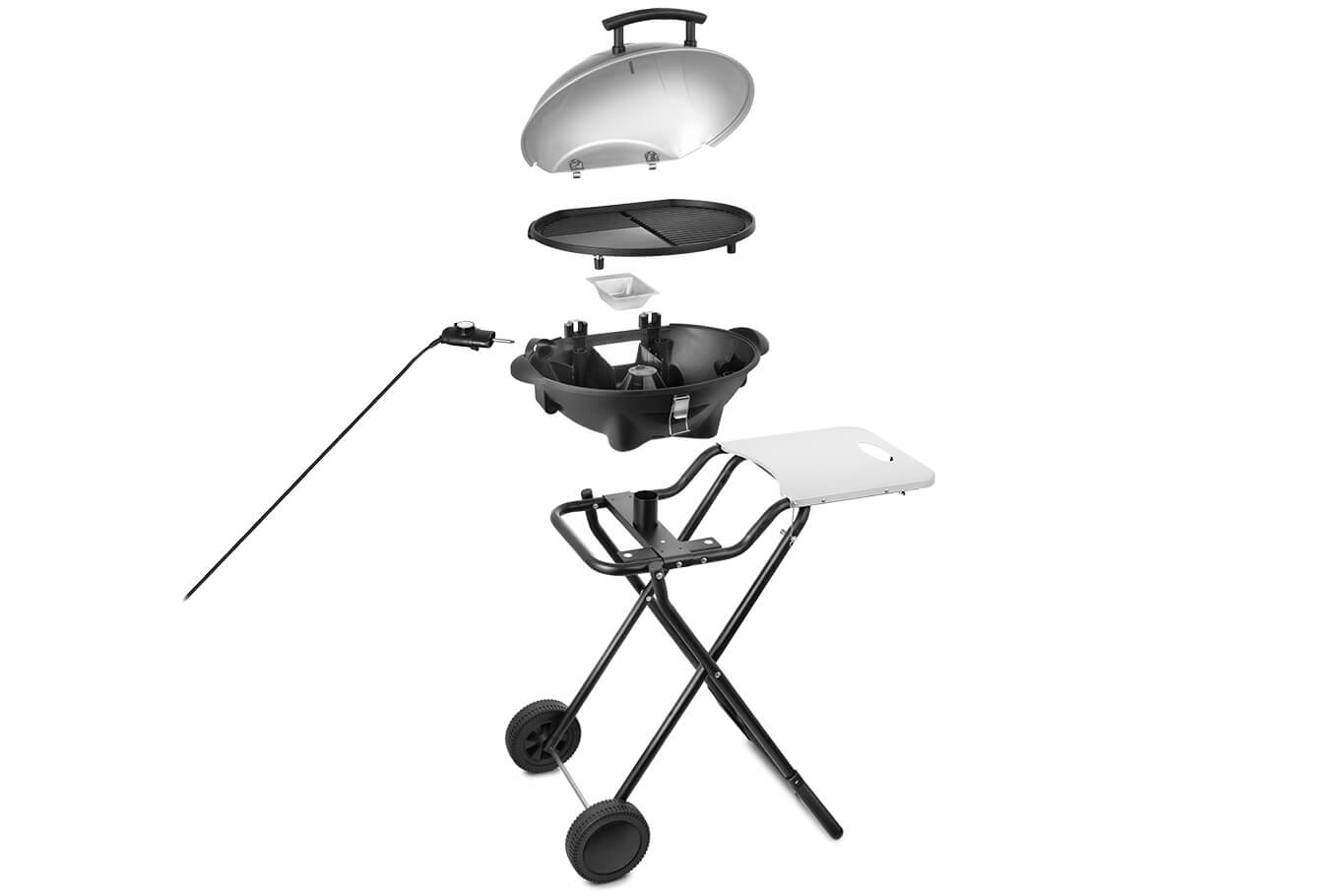 Опоры гриля легко складываются одним движением, и конструкция значительно уменьшается, что очень удобно для компактного хранения. Гриль можно использовать отдельно без опор на ровной горизонтальной поверхности.
